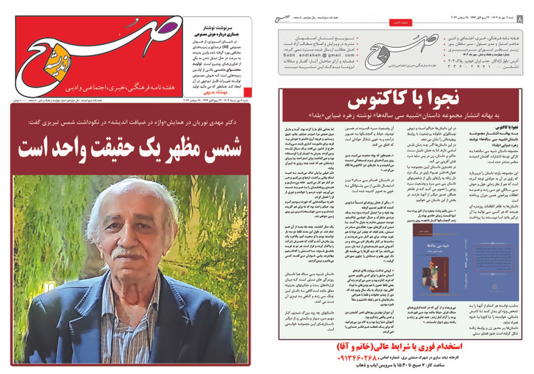 هفته نامه صبح اندیشه شماره476 تاریخ هفتم مهر1403