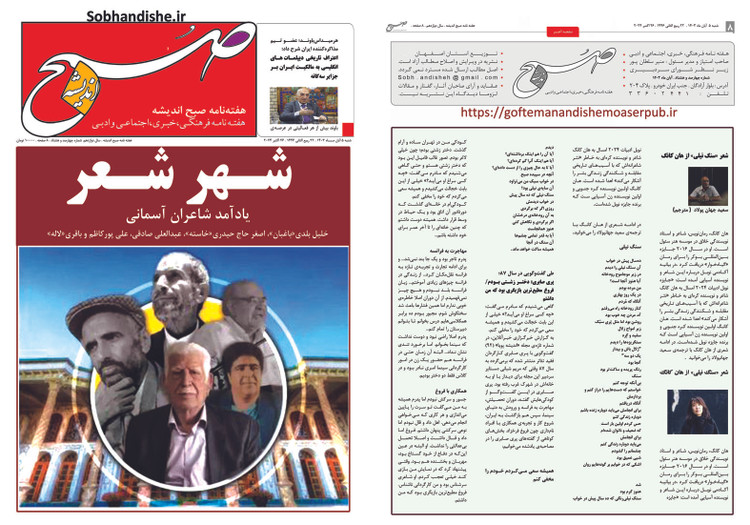 هفته نامه صبح اندیشه شماره 480 تاریخ 5 آبان 1403 با تیتر شهر شعر یادآمد استاد خاسته،باغبان،عبدالعلی صادقی و...