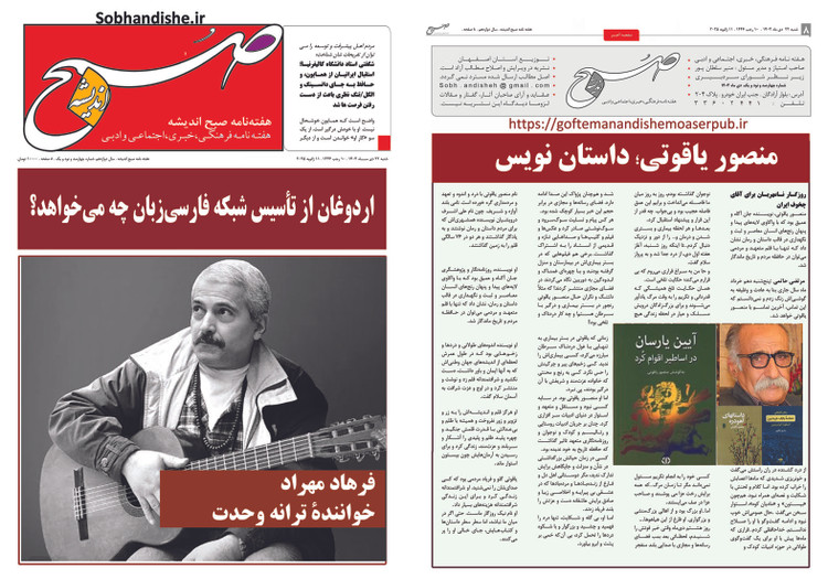 فرهاد مهراد خواننده ترانه وحدت.هفته نامه صبح اندیشه شماره 491 تاریخ 22 دی ماه 1403
